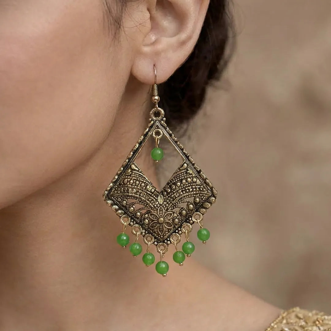 Antique Silver Jhumka Earrings – Green