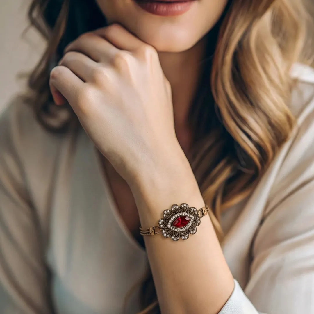 Turkish-inspired chain bracelet with red stone accents