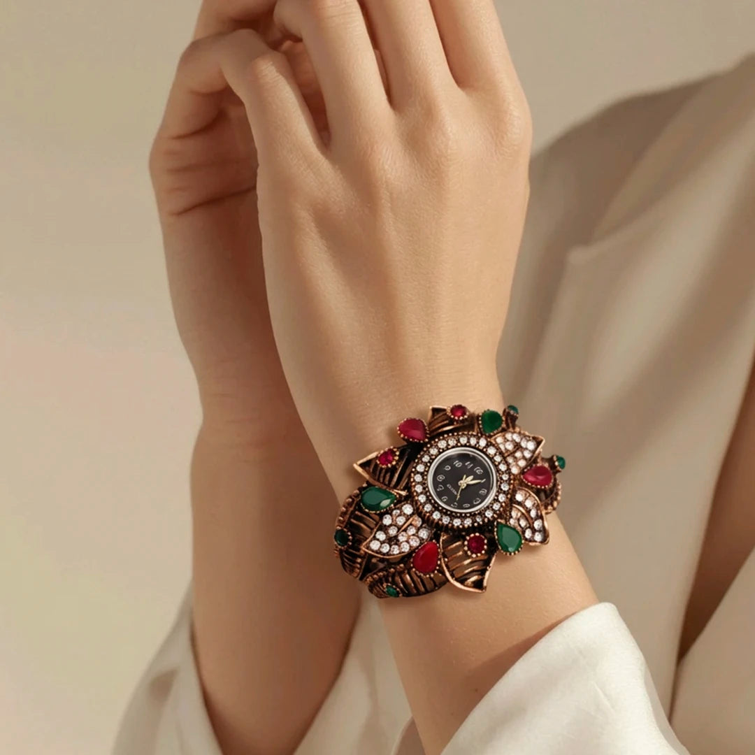 Add a unique blend of elegance and functionality to your accessory collection with this Turkish Stone Watch Bangle, inspired by classic Turkish craftsmanship and modern design. Featuring a beautifully crafted bangle-style watch adorned with decorative stones, this piece offers the perfect fusion of jewelry and timepiece. Ideal for women looking for Turkish stone watch bangles in Pakistan, it enhances both traditional and contemporary outfits with ease.